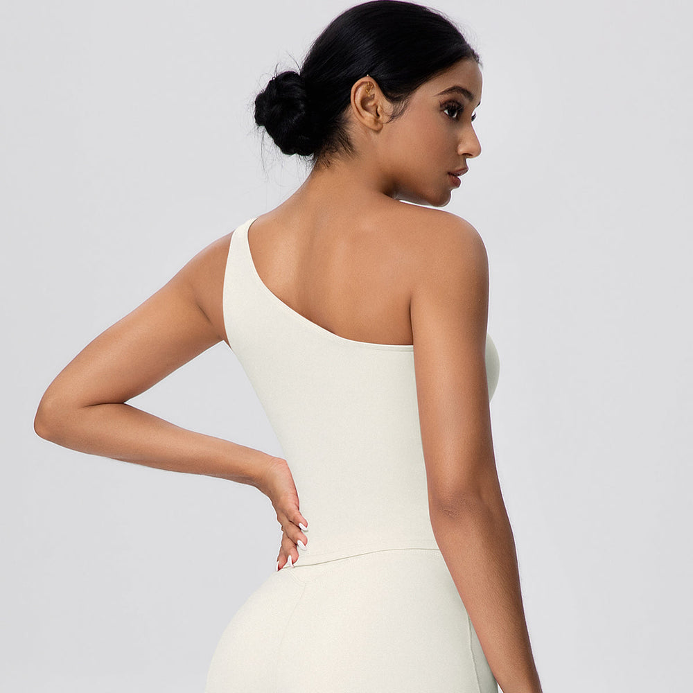 One-Shoulder Yoga Tank Top with Built-in Bra