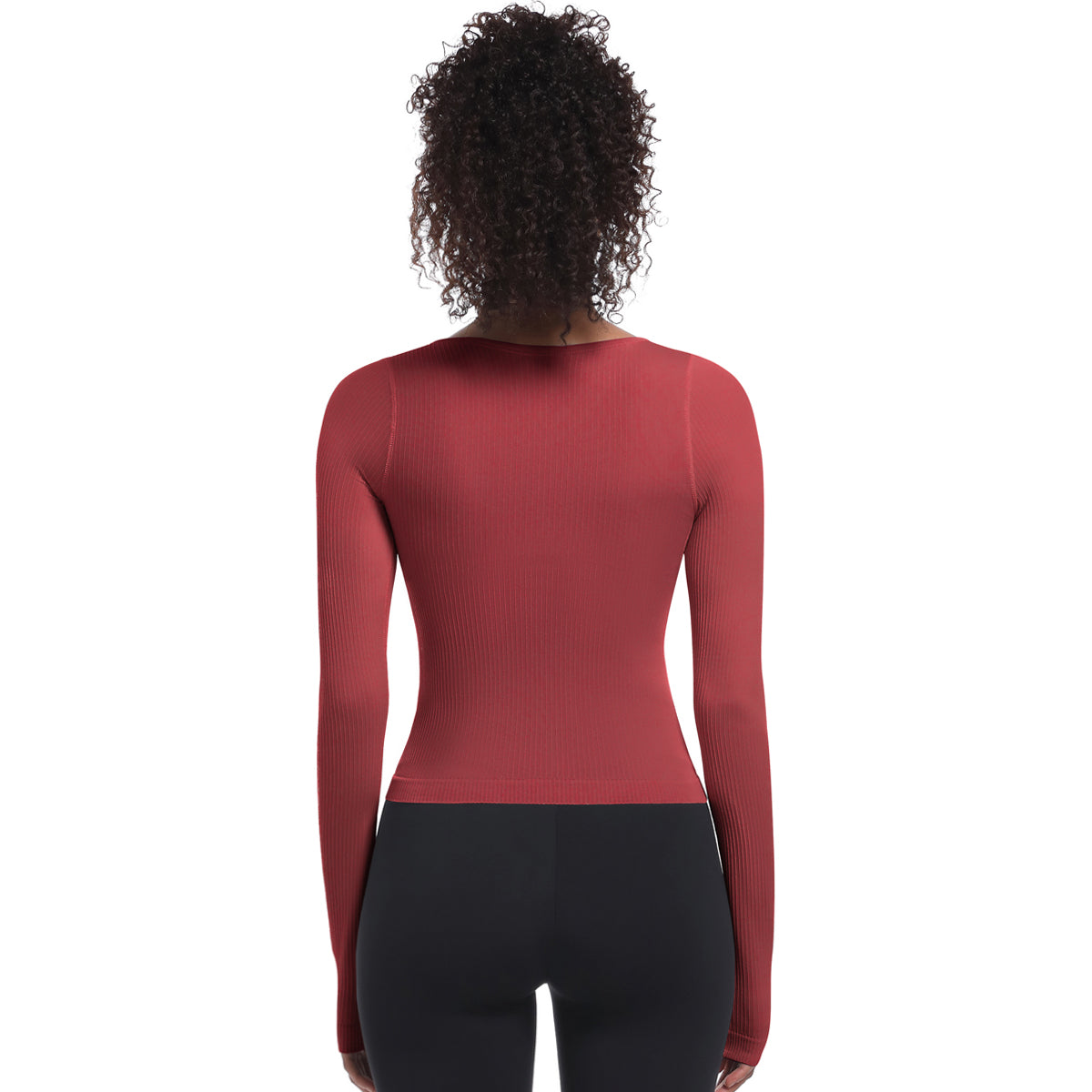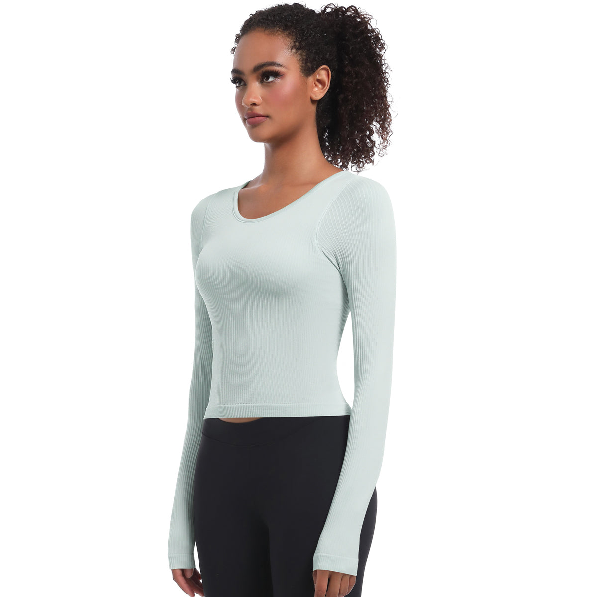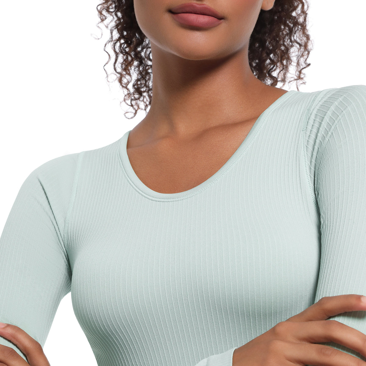Seamless Crew Neck Long Sleeve Top with Built-in Bra